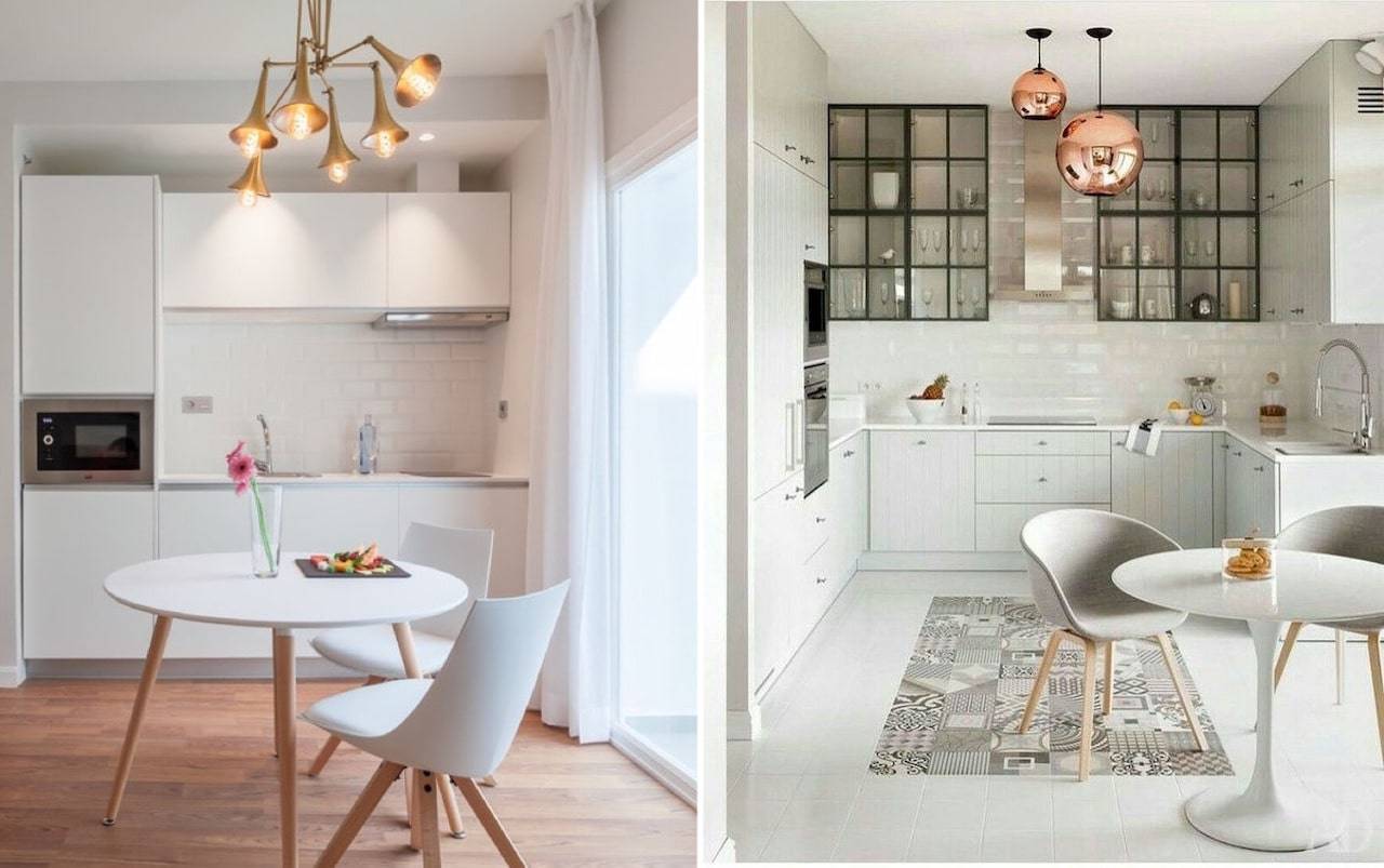 Совет! Если вы планируете создать модный дизайн маленькой кухни 2020, следует продумать функциональную роль углов. Мебельный ансамбль подбирают компактных размеров без громоздких декоративных элементов.