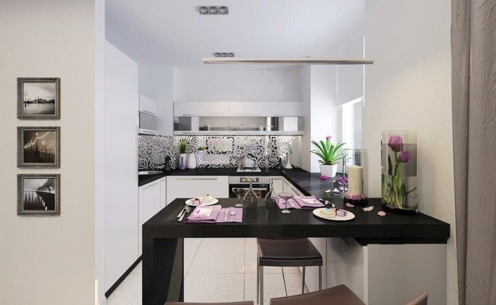 Барная стойка в дизайне небольшой кухни.