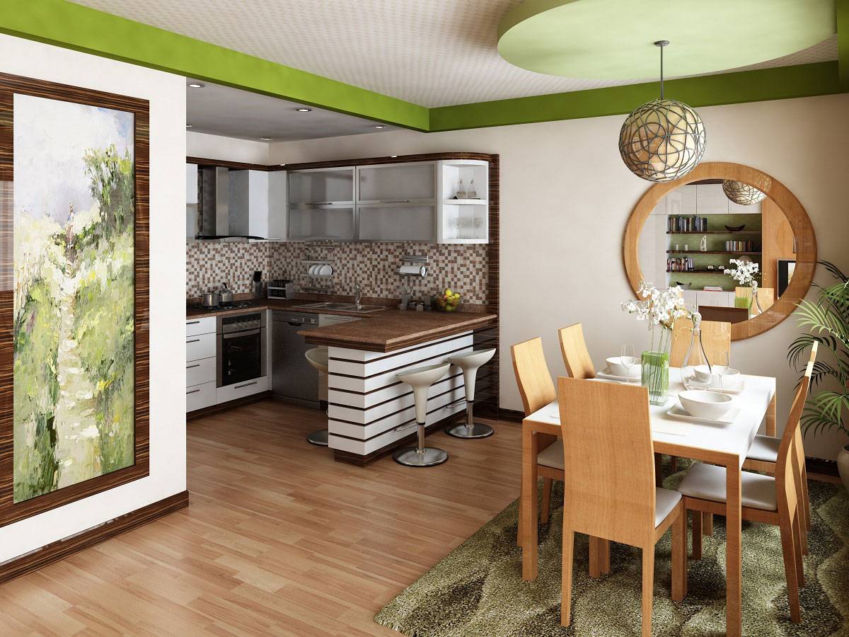 - не обязательно кухню и гостиную делать в одинаковых тонах, но сочетаться друг с другом по цвету они обязаны;