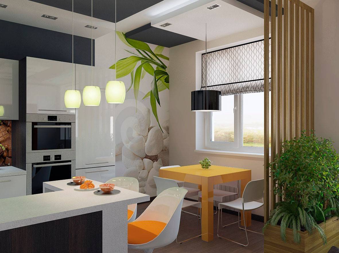 Создание или сохранение перегородки, колонн, балок и других архитектурных элементов. Если вы только планируете снести стену между кухней и гостиной, то вы можете оставить фрагмент перегородки или возвести новую. Также зонировать пространство поможет потолочная балка (как, правило, балки являются несущими и не подлежат сносу) или колонна.