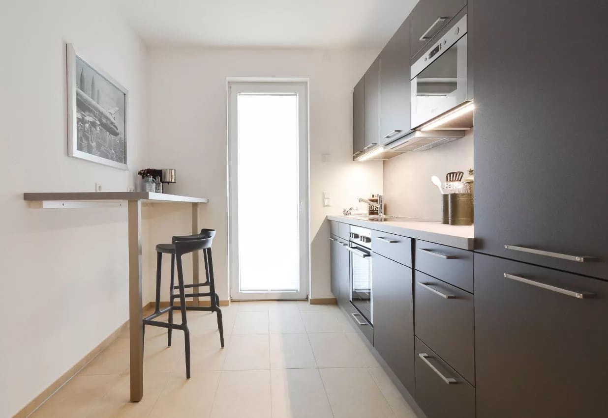 В качестве основы для дизайна маленькой узкой кухни идеально подойдут нейтральные тона: молочно-кремовый, бежевый, белый или серый.