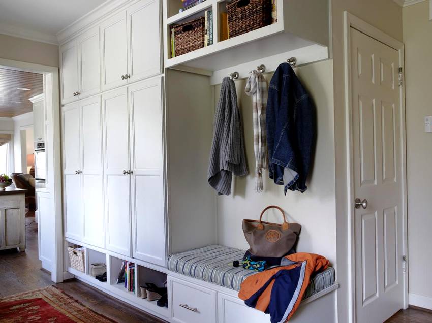 - Место для хранения вещей. Подумайте о том, чтобы иметь крючок, корзину или ящик для каждого члена семьи, чтобы у них всегда было место, куда положить все вещи, как только они войдут в дом. Также все члены семьи будут точно знать, где найти вещи, когда они уходят. Если у вас есть маленькие дети, можно закодировать места для хранения разными цветами.