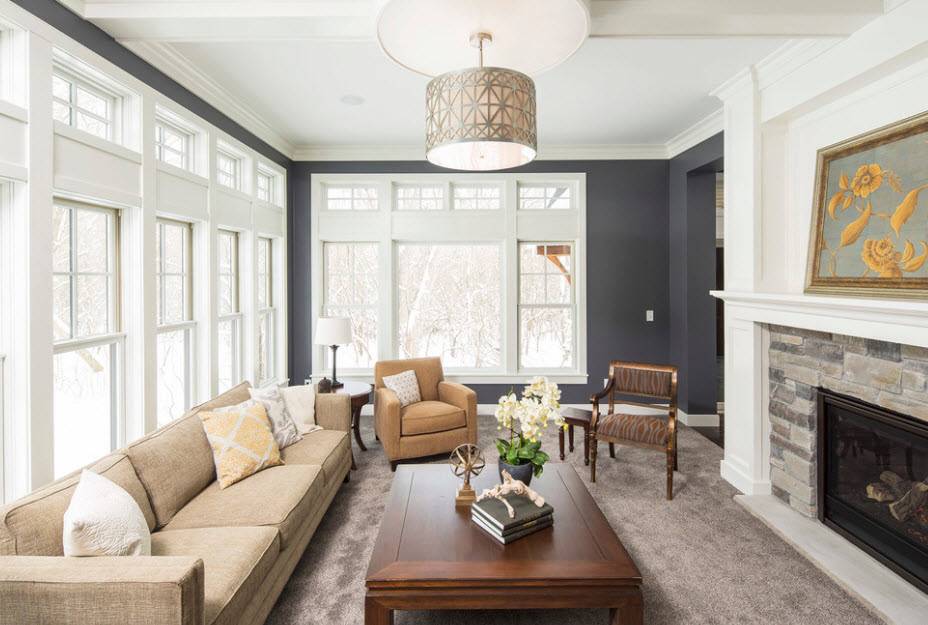 Интерьер в серых тонах нейтральный, ведь цвет является чем-то промежуточным между белым и черным. По мнению дизайнеров, это благородный вариант для оформления жилой комнаты. Чаще всего используется дымчатый, стальной, сизый, серебряный, свинцовый.
