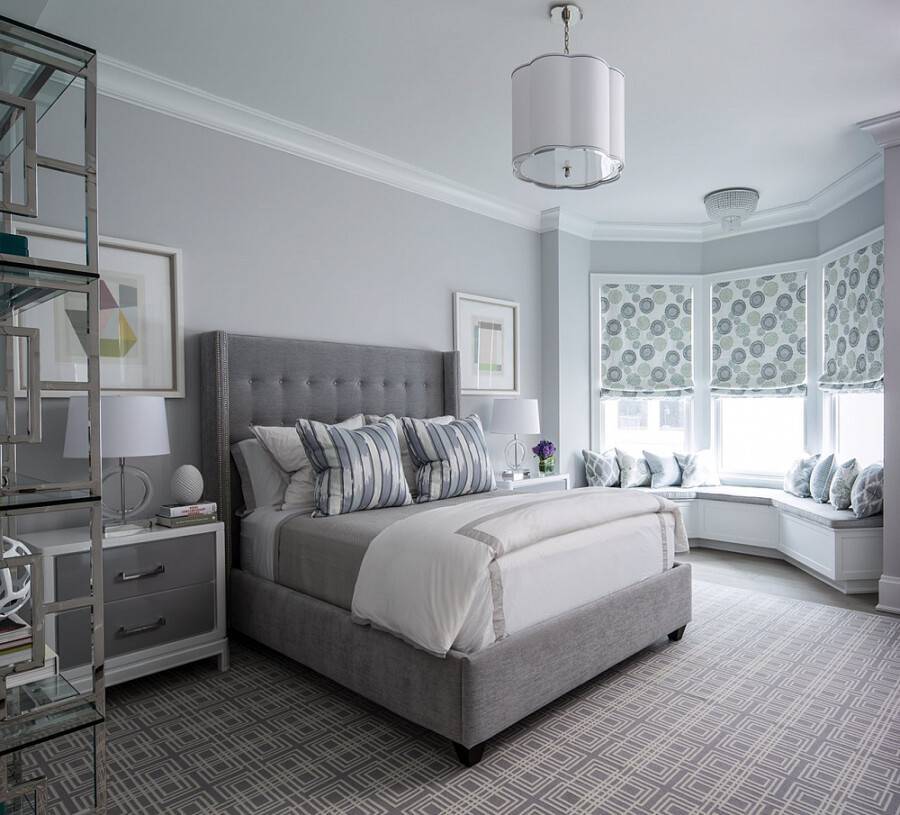СОВЕТ: Чтобы смягчить серо-голубую спальню для взрослых, используйте белую мебель/декор, а чтобы освежить детскую комнату, используйте желтый, зеленый или розовый цвет.