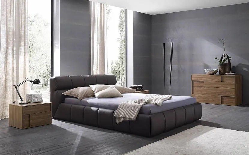 Темно-серый интерьер, если в спальне деревянная мебель