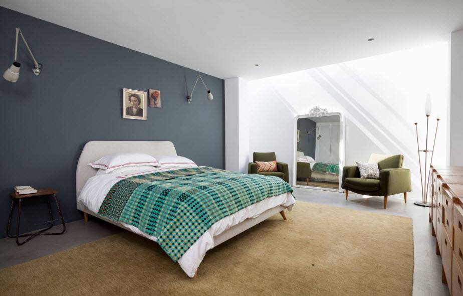 Серо-голубой интерьер, если в спальне мало места
