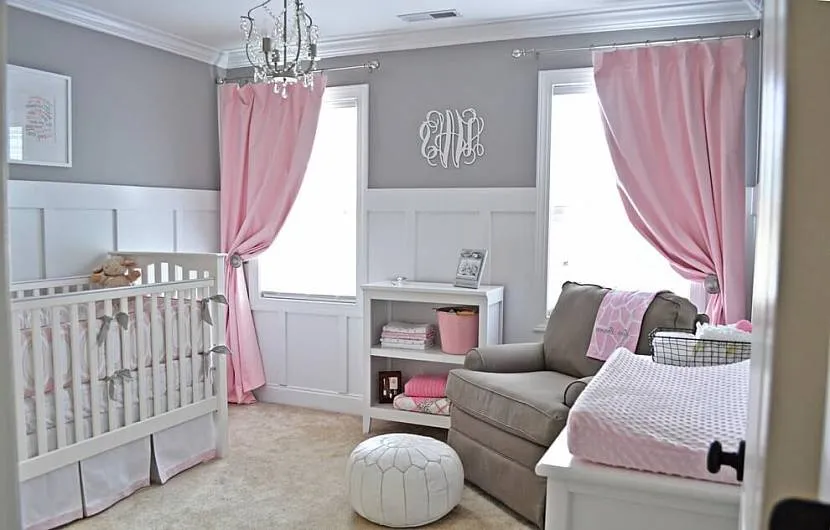 Идеальное сочетание серого и бледно-розового подойдет для женственной обстановки. Будет выразительно смотреться в девичьей детской!