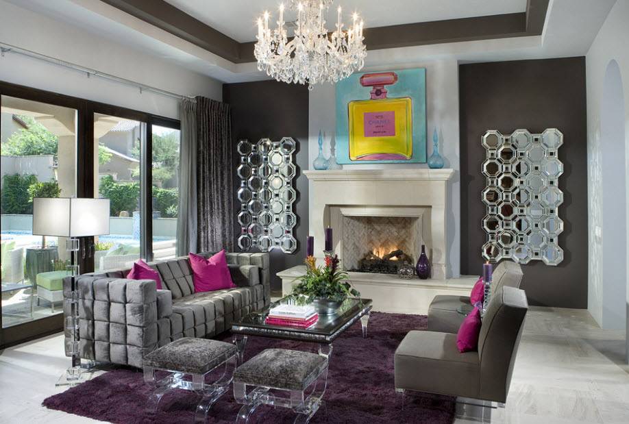 Крайне удачным сочетанием является среднего серого с лиловым, фиолетовым и сиреневым оттенком. В соседстве с серым они уже не отяжеляют интерьер, а освежают его. Пусть большая часть потолка и стен остается серой, а сиреневый или синий — послужит дополнительным оттенком.