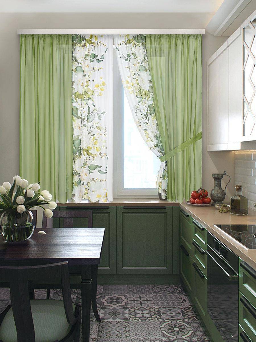 Коричневый, зелёный несут с собой чувство защищённости. Занавески в таких тонах придадут кухне выразительный вид и помогут добиться комфортной атмосферы.