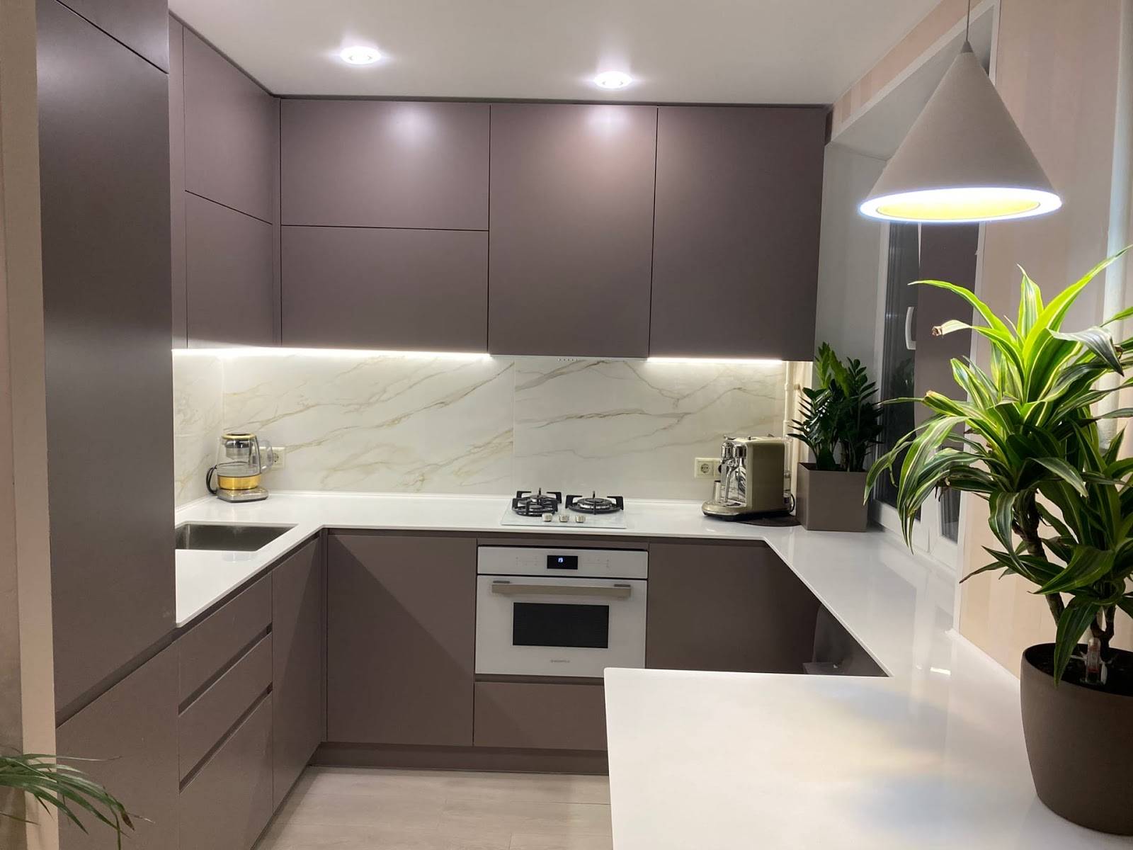 Угловая кухня со смежными рабочими поверхностями на небольшой кухне