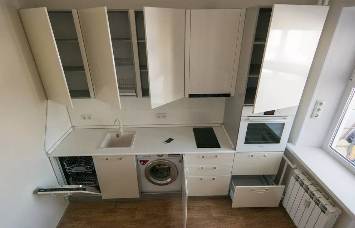 Для интерьера малогабаритной кухни 7 кв. м лучше подойдет встроенная техника