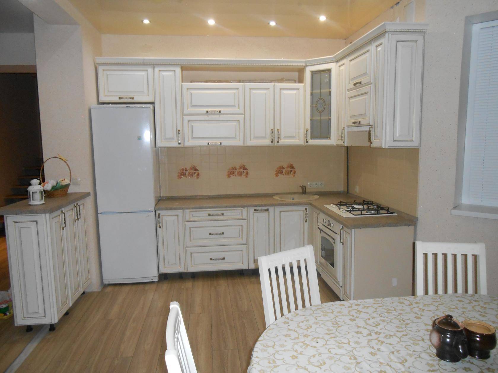 Угловая кухня в классическом стиле выглядит дорого, это сдержанность с налетом роскоши. Фасады из натурального шпона, дерева или материалов под него, часто с вычурной фрезеровкой, уместна позолота. Дополняется массивными карнизами, пилястрами и балюстрадами. Используется стекло с витражами, приветствуются плавные формы, не кричащие цвета.