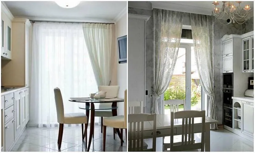 Если кухня длинная, тюль для окна необходимо размещать выше проема. Низ текстиля не должен касаться гарнитура. Допустимо удлинить подоконник и превратить в стойку, рабочую зону. Если планировка длинной кухни подразумевает выход на балкон, то можно перенести в закрытое помещение холодильник или обеденную зону. При планировке обеспечивают свободный доступ к двери. Ниже на фото дизайн длинной кухни.