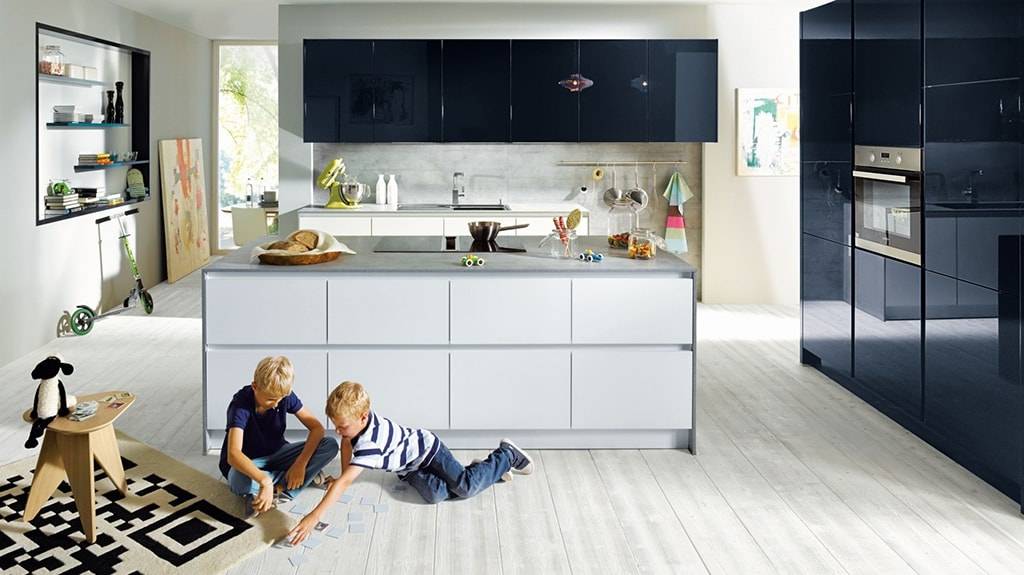 Чаще всего ее устанавливают в умеренно узких, но длинных кухнях. Такая кухня представляет собой две части кухонного гарнитура, расположенные друг напротив друга. В этом случае можно выполнить условия оптимального «рабочего треугольника», расположив мойку напротив плиты и холодильника (другое расположение неудобно, т.к. сложно перенести вытяжку на противоположную сторону). Ширина прохода между двумя рядами должна составлять хотя бы 90 см. Можно визуально расширить пространство кухни либо убрав все верхние ящики, либо только на одной стороне, либо заказать светлые навесные шкафы. Если на такой кухне есть балкон, то его можно объединить с комнатой. Полученное длинное помещение можно разделить на две части. В первой, ближней от входа, будет располагаться двухрядная кухня, а во второй можно расположить зону столовой с мягким уголком и телевизором. Разграничить две зоны можно или барной стойкой или аркой.