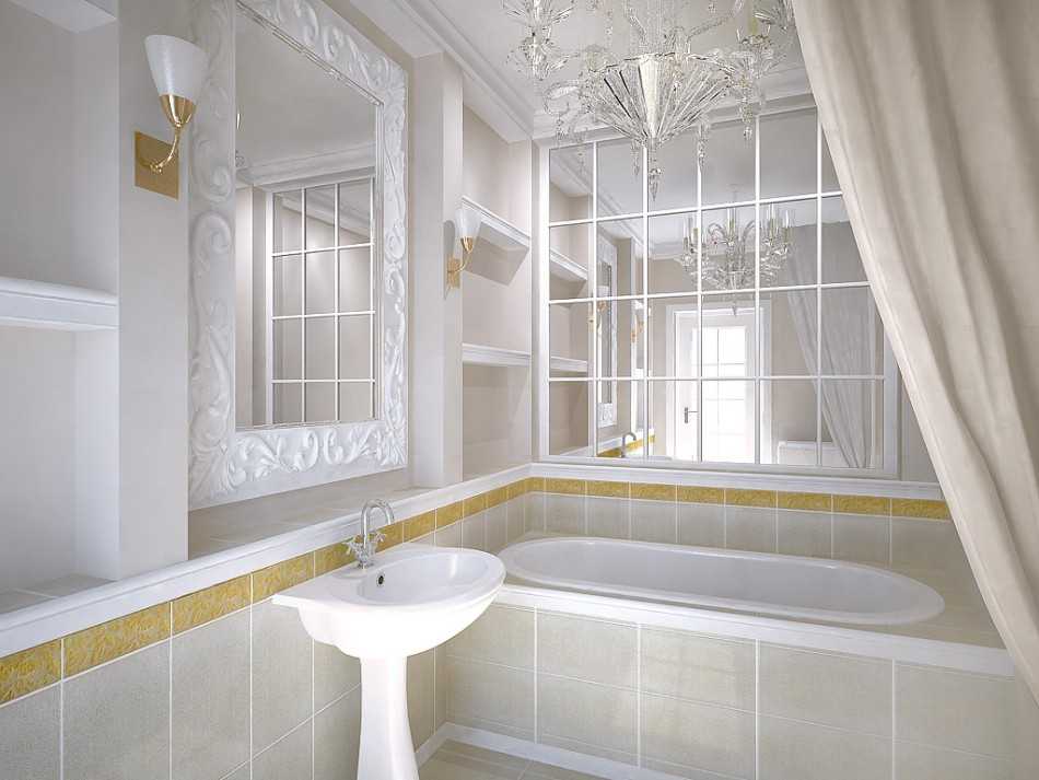 Главные особенности этого стиля — симметричность, пропорциональность и мягкая гармония светлых оттенков идеально подходят для маленькой ванной комнаты. Единственное ограничение — следует более умеренно использовать декор и обойтись без фигурной лепнины.