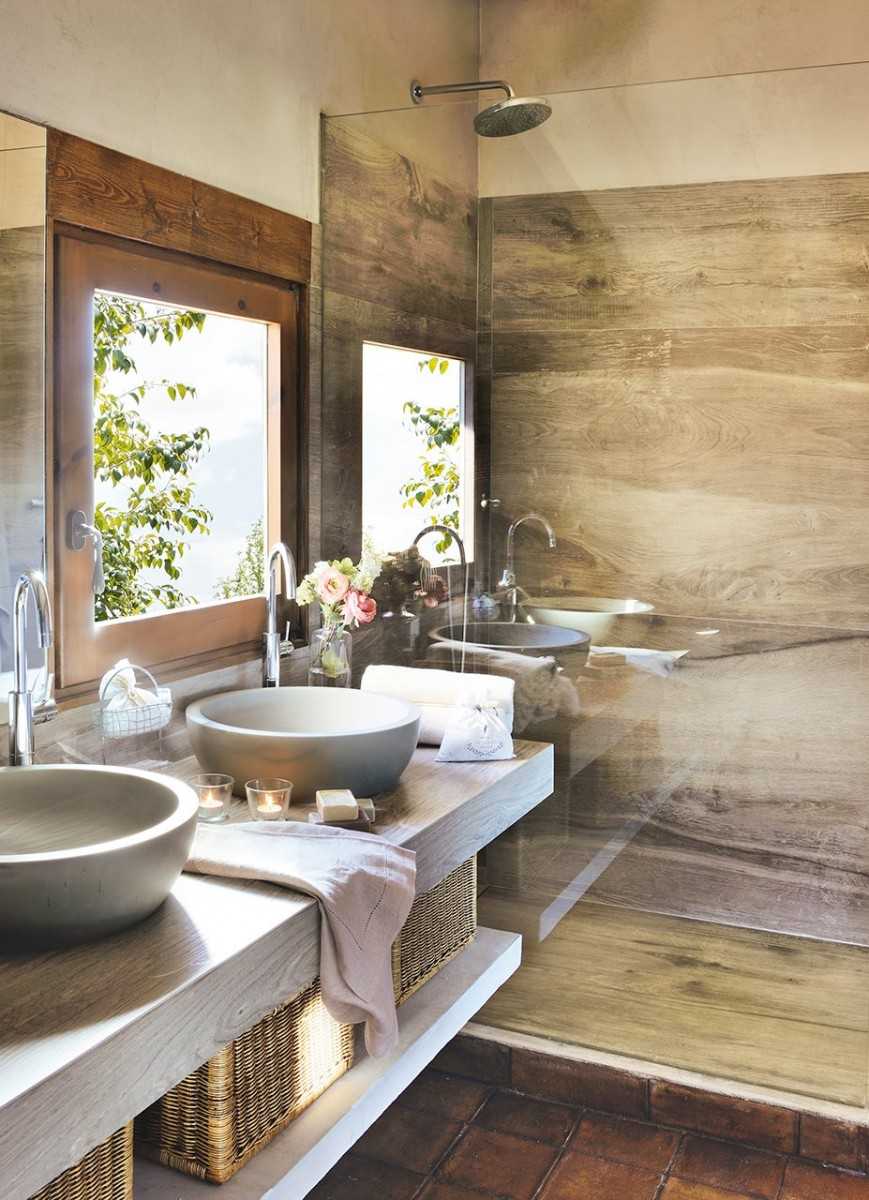 Раковину необходимо устанавливать в противоположном углу от душевой кабины, чтобы уравновесить интерьер. Рядом можно установить стиральную машинку, чтобы оставить середину свободной.