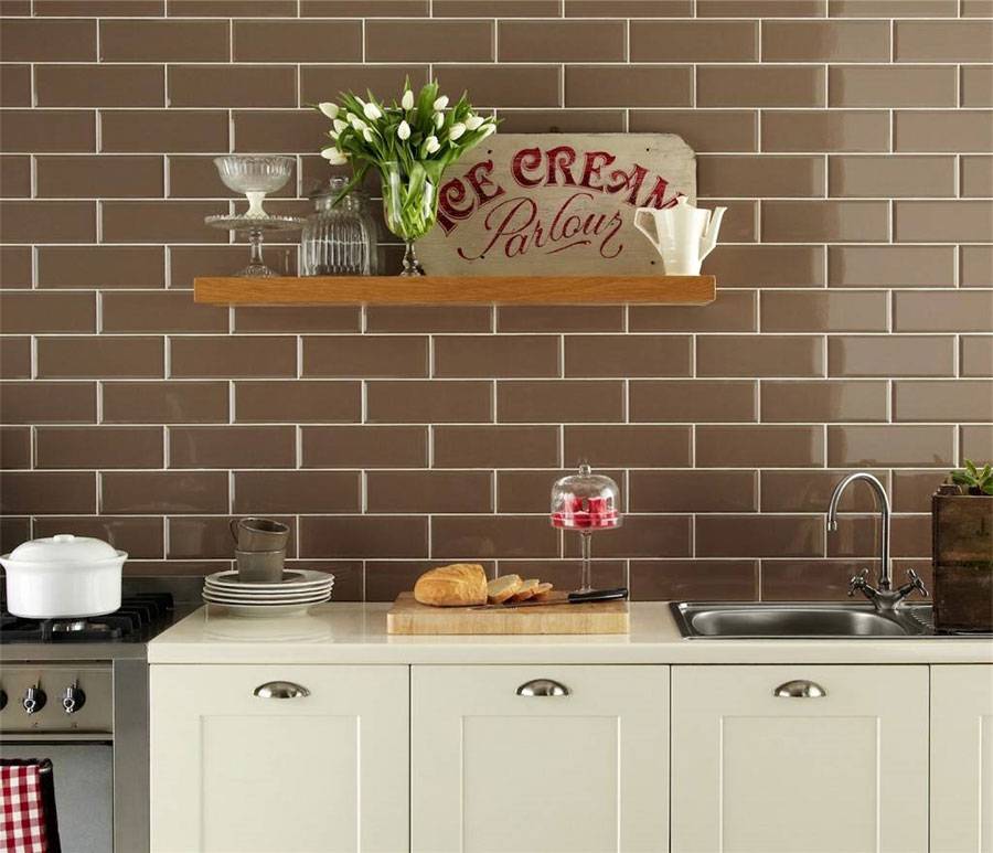- Широкий ассортимент цветов и оттенков. Это позволит подобрать облицовку под любой интерьер кухни.