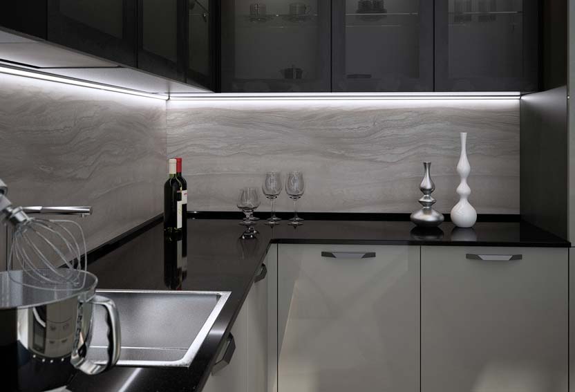 Чтобы сделать интерьер в соответствии с трендами, можно использовать в качестве декора мраморные покрытия. Они могут находиться на столешницах, гарнитуре. Цветовые решения варьируются от светлых до темных, в зависимости от дизайна кухни.