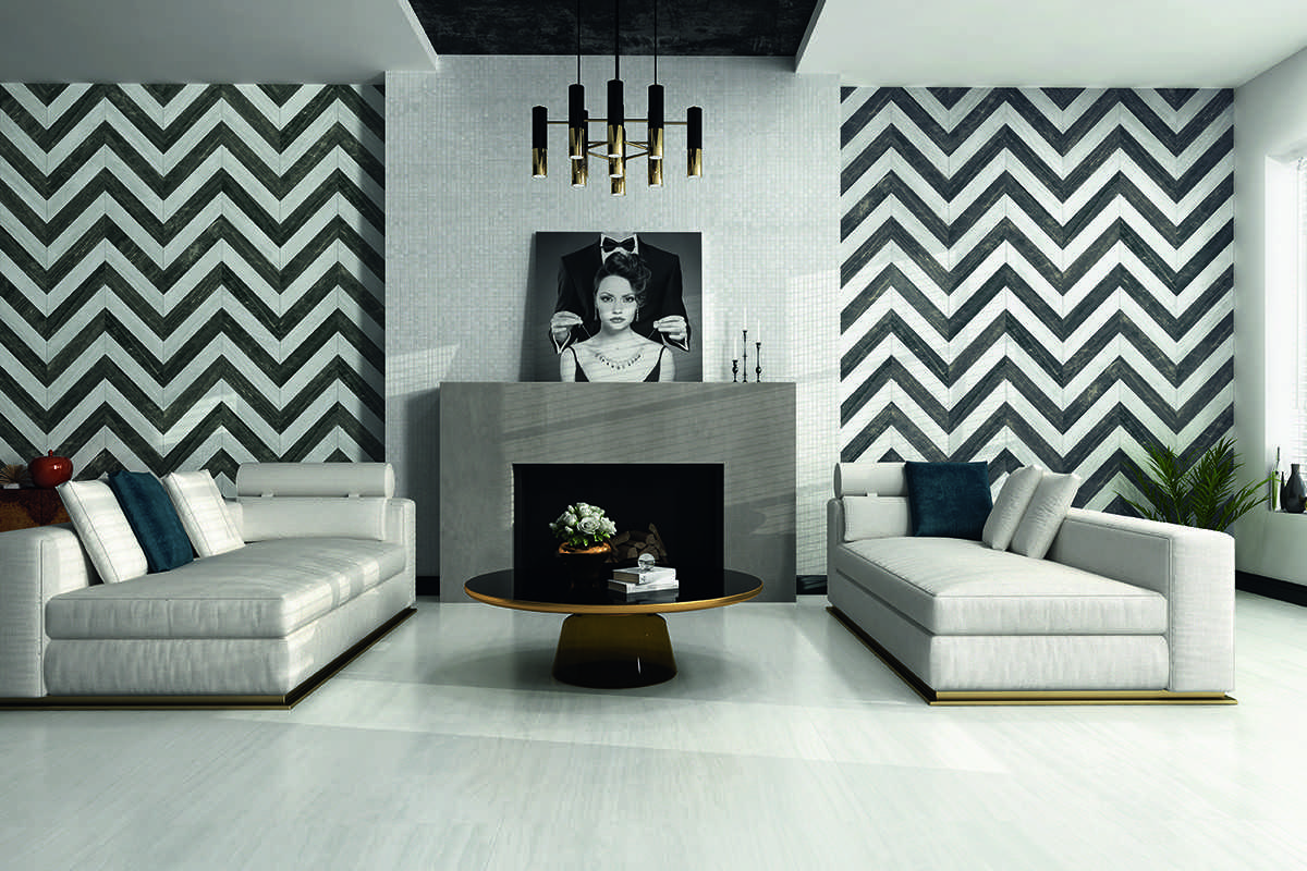 Геометрические узоры, которые являются возвращением к стилю арт-деко в дизайне интерьера, также пользуются огромной популярностью.