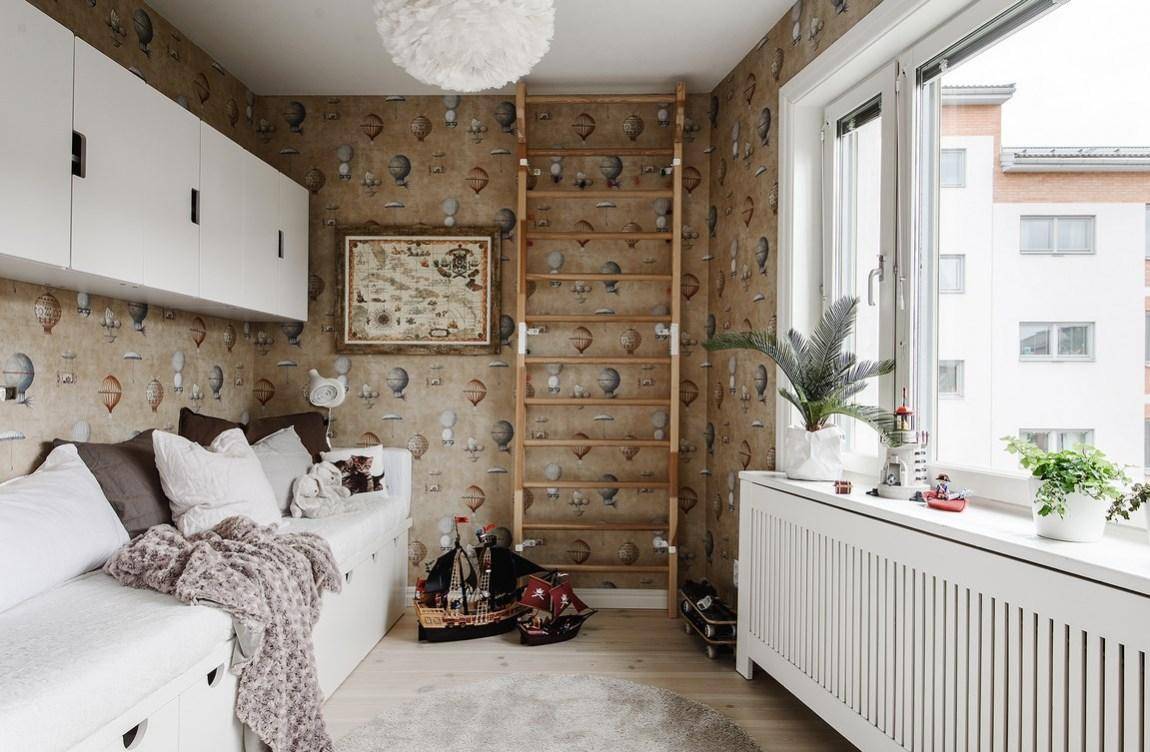 Совет! На стены лучше клеить обои с мелким рисунком, также отлично будут смотреться однотонные светлые обои.