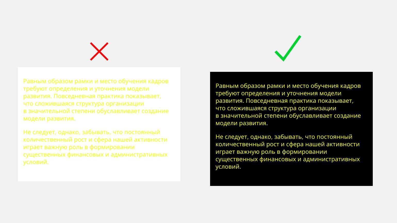 Любые информационные продукты важно делать доступными, а жёлтый текст на белом фоне прочитать очень трудно:. Изображение: Skillbox Media