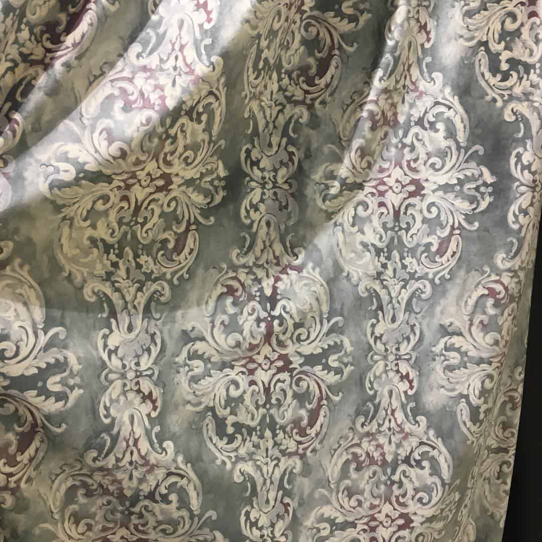 Подбирается несколько полотен близких оттенков, закреплённых в несколько слоев. Если одну из них закрепить подхватом, получается интересный эффект. Из цветов применимы оттенки сиреневого, лилового, кремового, мятного.