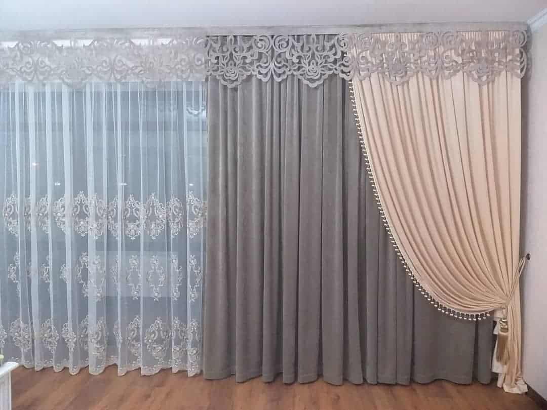Нейтральный бежевый оттенок – идеальный вариант для штор с ламбрекенами.