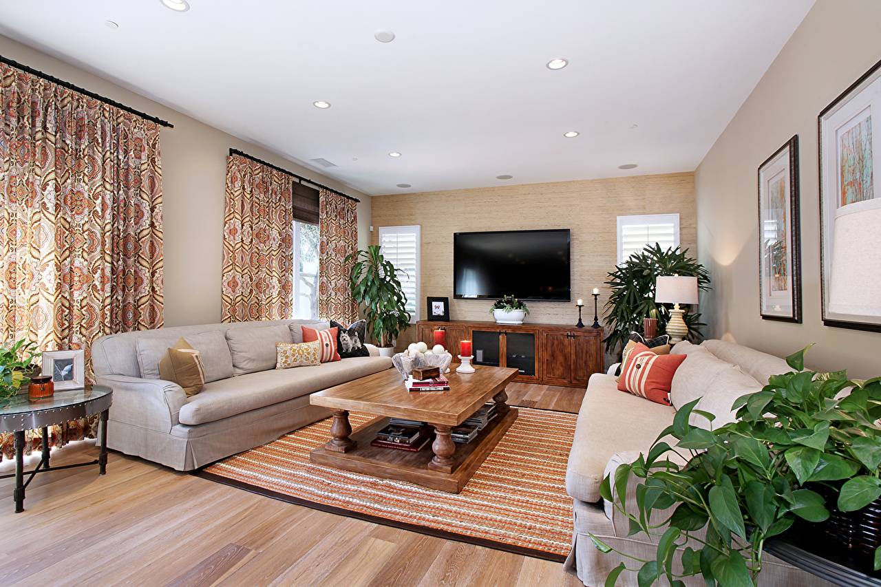Общее впечатление от дизайна дома у гостей в основном складывается из оформления гостиной комнаты, или зала. Чтобы убранство этого помещения смотрелось как единое целое, необходимо тщательно продумать все составляющие интерьера данного пространства. Не последняя роль в задаче оформления зала принадлежит декорированию шторами оконных проемов.