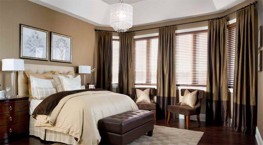 Существует несколько правил того, какого цвета выбрать шторы в спальне: