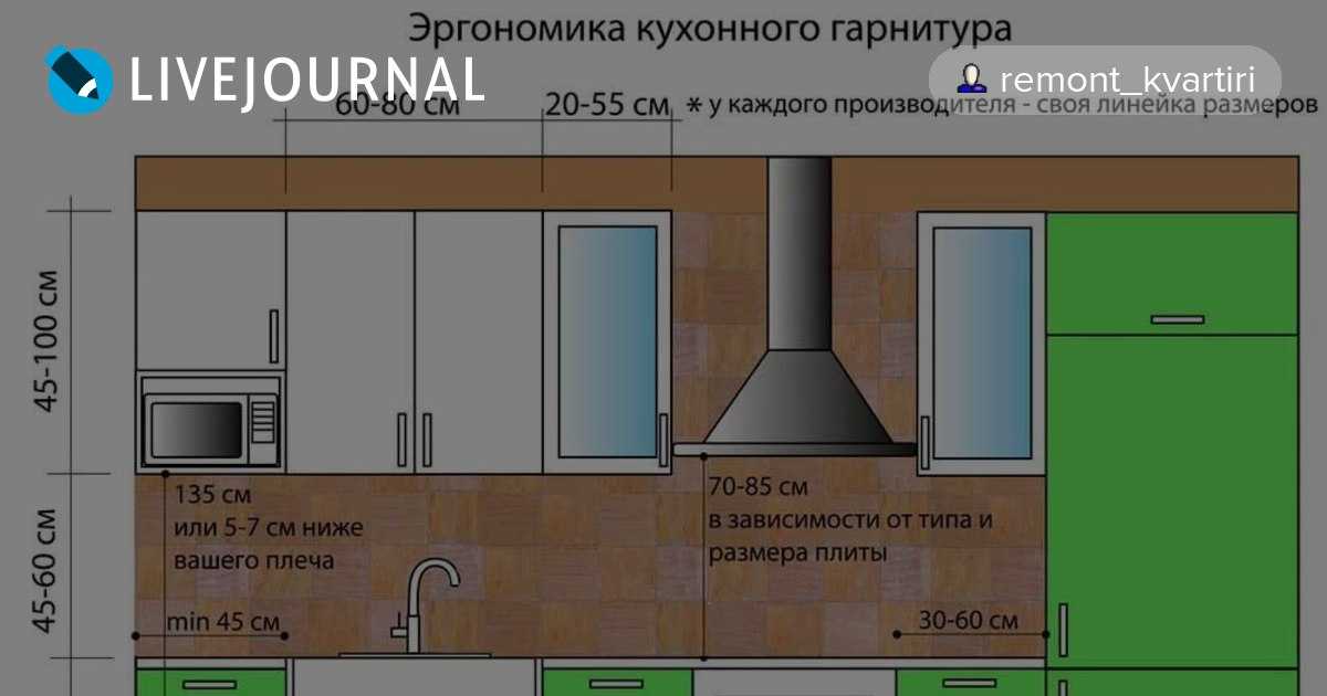 При низких потолках (например, 270 см) откажитесь от покупки высокого гарнитура. Минимальное расстояние между ними и рабочей поверхностью не даст жильцам легко дотянуться до верхних полок. Здесь шкафы средней высоты – универсальное и оптимальное решение. В советское время большая часть кухонных наборов делалась «под копирку». Сегодня же можно заказать гарнитур «под себя». Ростовка выпускаемых в сборе кухонных принадлежностей задаётся таблицей значений по ГОСТу. Здесь заранее определены число тумб и размеры каждой из них, рекомендации по расположению кухонных принадлежностей и посуды, эргономические требования.