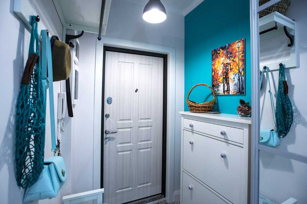Большой простой шкаф для хранения вещей лучше отправить в комнату, заменив его симпатичными крепкими крючками. Конечно, придется повозиться, регулярно меняя ассортимент одежды в зависимости от времени года. Зато в прихожей появится место для маневров.
