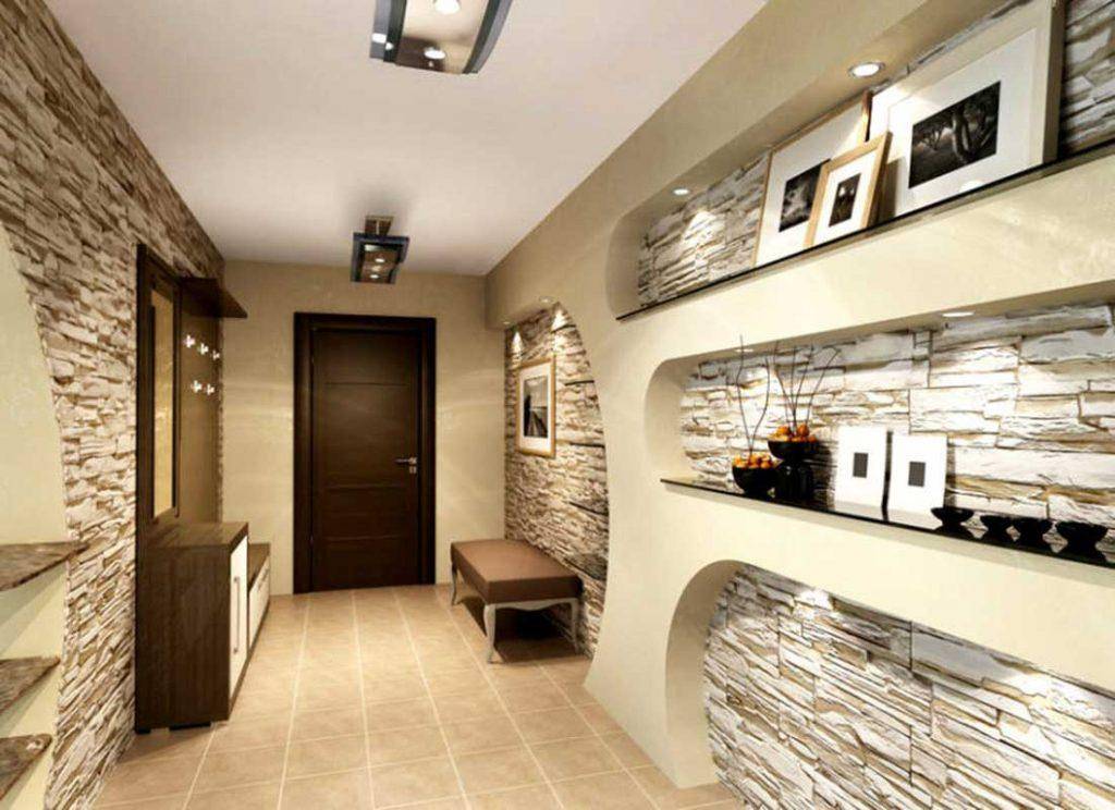 Декоративный камень. Им оформляют одну из стен или участки между дверными проёмами.