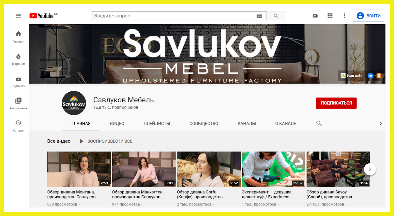 Канал белорусской фабрики «Савлуков-мебель»