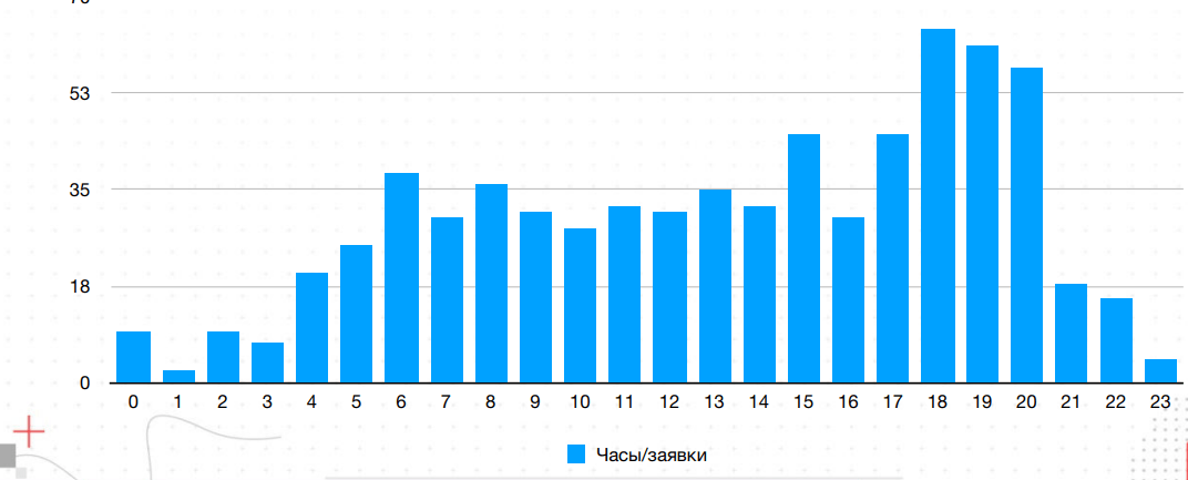 Это статистика за год по 2 тыс. лидам от нескольких клиентов. На эти данные можно ориентироваться, если вы выбираете время для размещения рекламы.