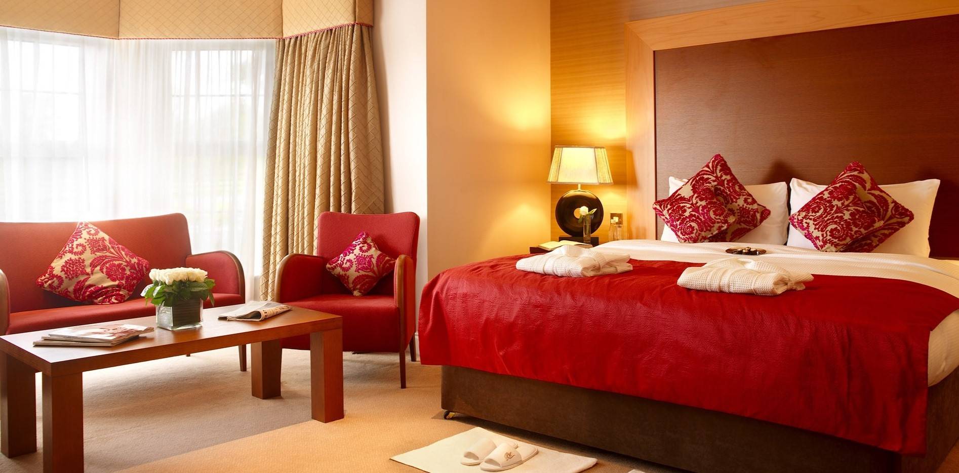 Красный цвет станет акцентным на фоне бежевого оттенка