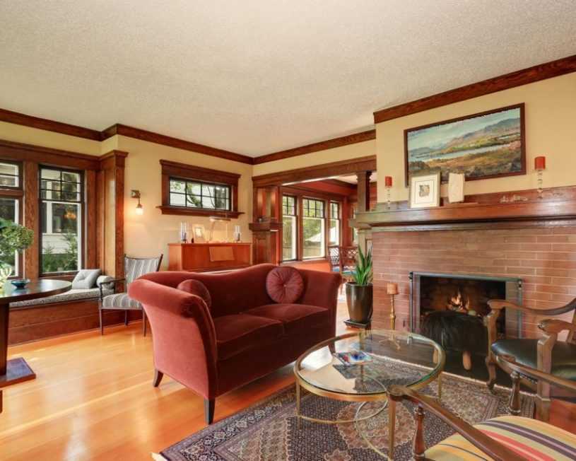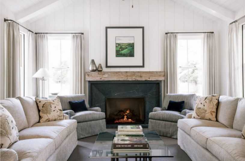 Камин занимает центральное место в интерьере гостиной, и это стоит учитывать, расставляя мебель. Все предметы должны стоять так, чтобы ничего не мешало с комфортом проводить время у камина всей семьей или в уединении.