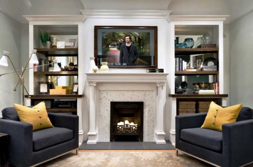 Все предметы мебели и камин должны быть выдержаны в одном стиле, перекликаться по цвету, декоративным элементам, фактуре и материалам. Каминную полку и стену за камином можно украсить декоративными элементами – фотографии, картины, статуэтки, необычные часы и многое другое.