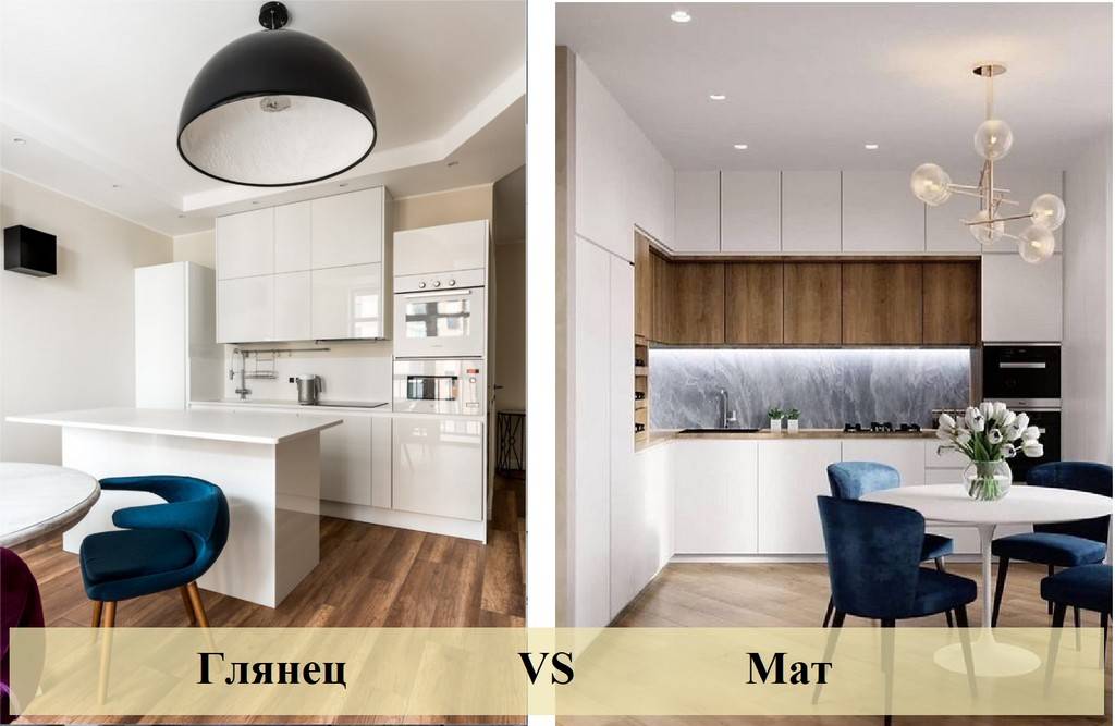 | Как выбрать в зависимости от стиля? | Матовые фасады уместны в любом стиле. | Глянцевые неуместны в традиционных, классических интерьерах. |