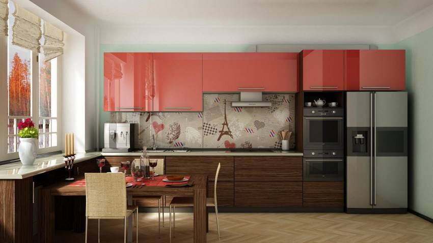 Рассматривая в каталогах фото стеклянных фартуков на кухне, не следует забывать о главном: за и против данных конструкций.