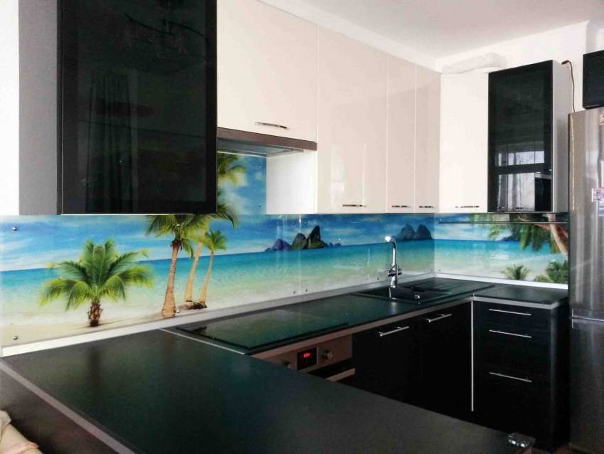 Небольшой совет: выбирая фартук с фотопечатью у производителя, поинтересуйтесь, какое стекло он применяет (ClearFloat либо Optiwhite). Первый вариант более дешевый, но материал имеет зеленоватый бутылочный оттенок. Именно потому он способен немного исказить изображение. Второе стекло проходит дополнительное отбеливание, а потому его используют для разных картинок. Однако и стоимость его дороже.