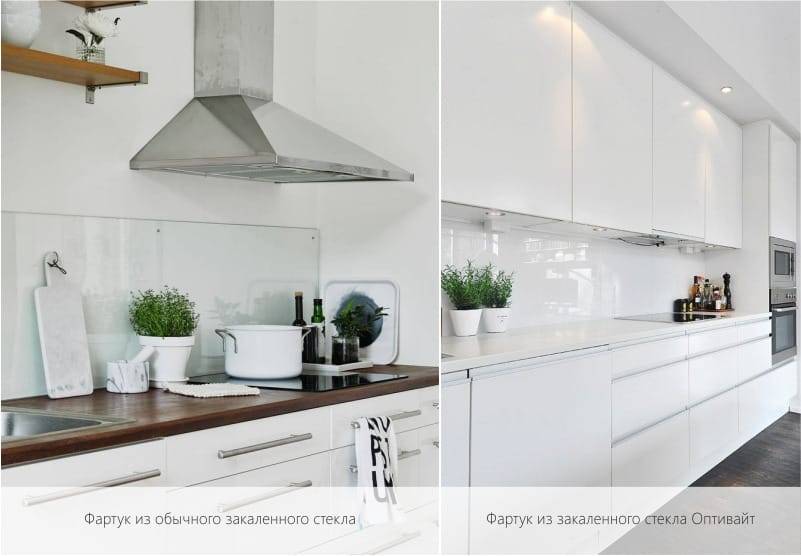 Выбирая материал на фартук, необходимо учитывать тот факт, что закаленное стекло бывает двух видов: