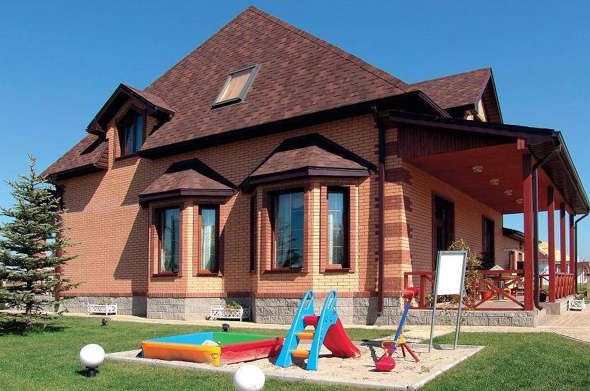 При выборе цвета следует учитывать цвет кровли. Удачное сочетание окраски фасада и крыши будет усиливать декоративный эффект от облицовки, подчеркнет выразительность материала и украсит облик дома.