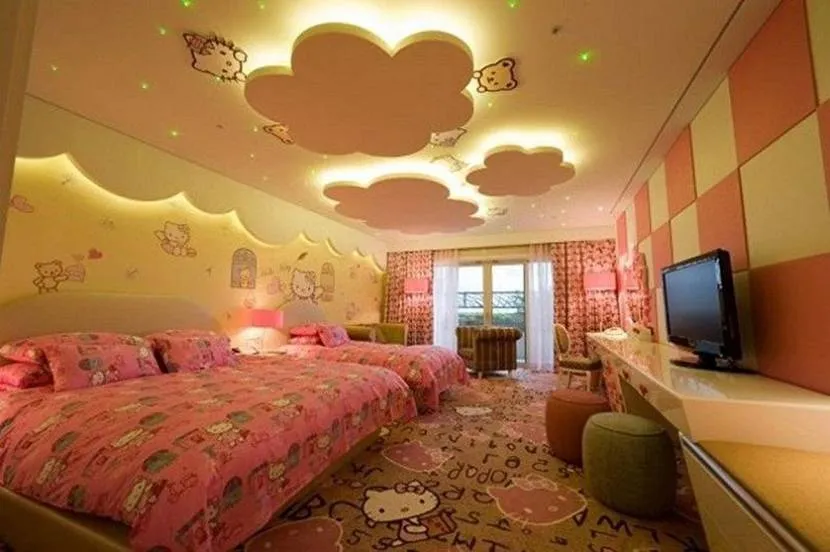 Сегодня для создания таких потолков используется подвесной гипсокартон, натяжные системы или их комбинация. Многоуровневые конструкции состоят из сложных форм – волнистых, округлых, напоминающих по форме цветы, растения и т. Д.