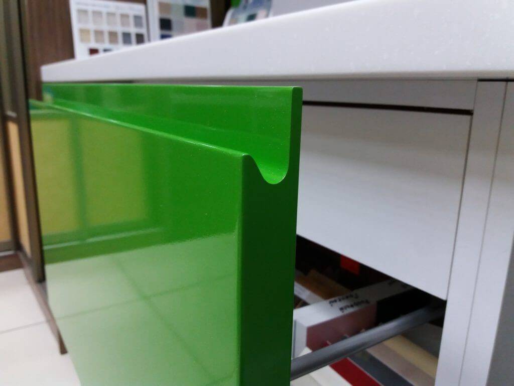В уходе легче глянцевые фасады, их чистят с помощью губок и стеклоочистителя. Матовый гарнитур, напротив, нуждается в тщательной уборке с помощью чистящих средств без абразивных веществ.