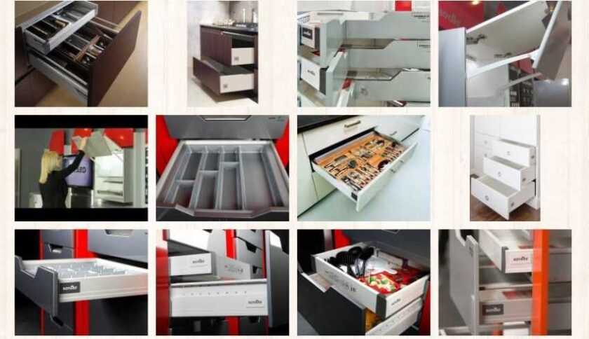 Выдвижная фурнитура обеспечивает легкое открытие ящиков и максимально оптимизирует рабочее пространство. Направляющими конструкциями могут быть снабжены кухонная мебель, мебель для гостиной и спальни.