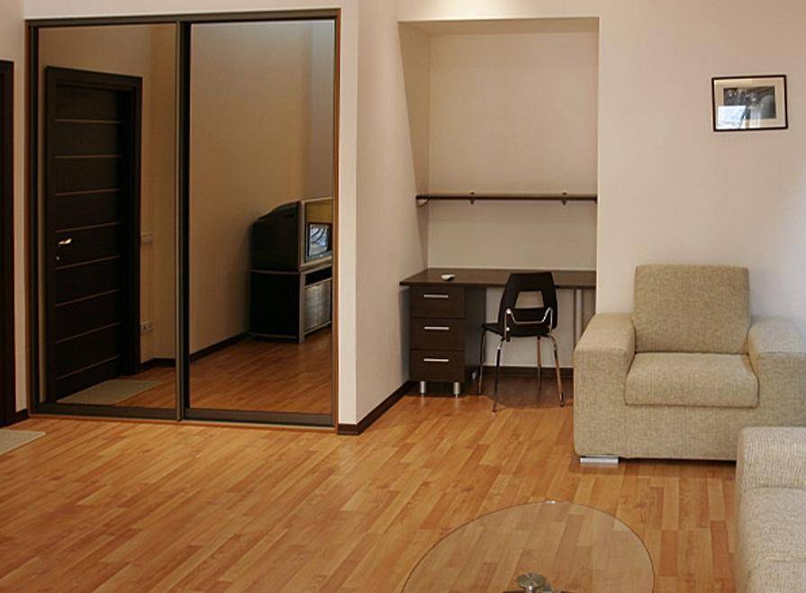 В однокомнатной квартире отличным местом для расположения гардеробной является ниша в противоположной стене от входной двери