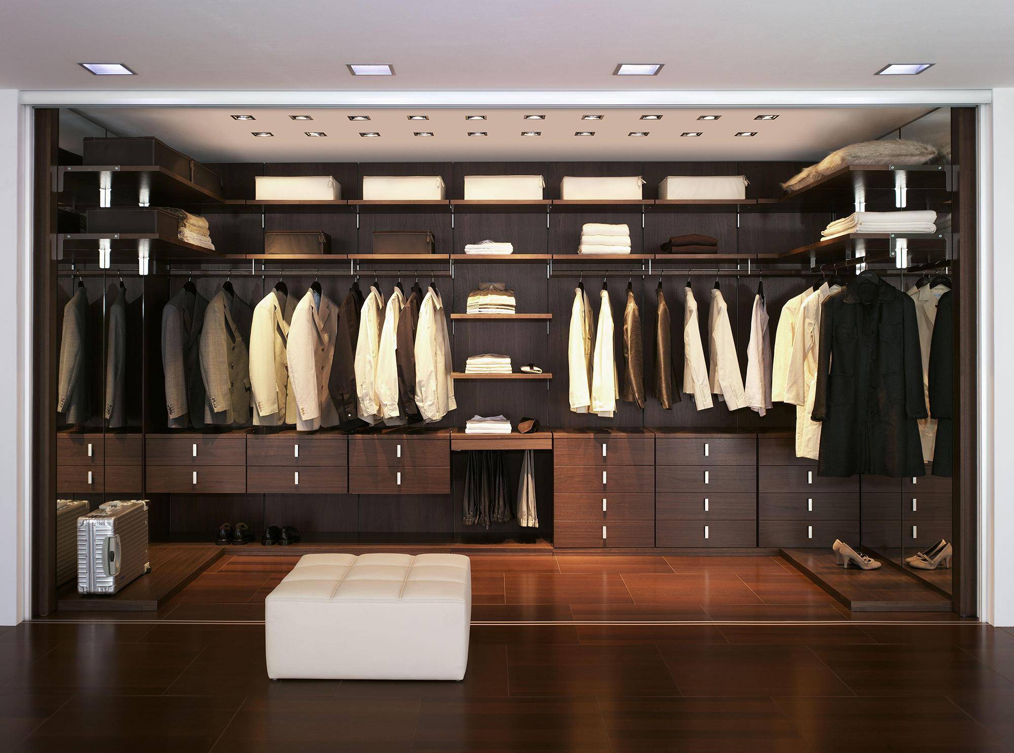 Спальня — помещение, наиболее пригодное для гардероба. Модели различны — при большой площади, возможно сделать целую гардеробную комнату. Если спальня не позволяет, то лучше использовать: