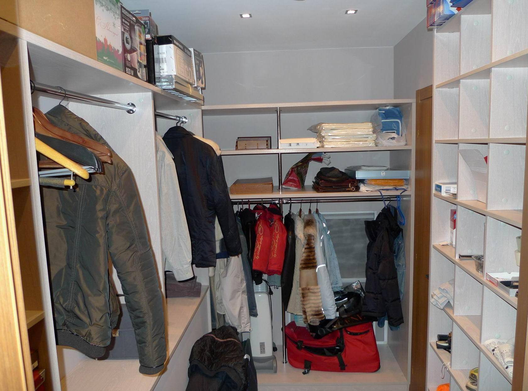 Изготовление гардеробной в кладовке — удачное решение, особенно для маленьких квартир. Делать её просто — необходимо убрать всё лишнее, отделать в светлой гамме (это увеличит пространство), заменить двери (лучше по типу купе) и наполнить: стойками, стеллажами, полками. Так как, кладовки маленькие, следует обустроить их зеркалами, тем самым делая больше.