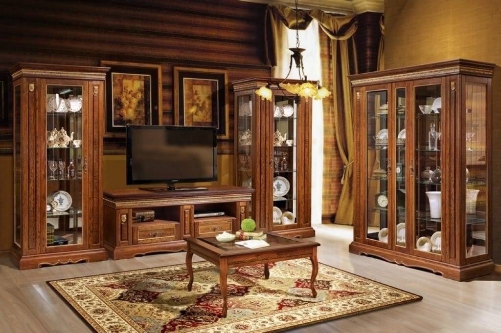 Состав других гарнитуров предлагает также дополнительную мебель. Мягкая мебель представлена креслом-кроватью или подобной конструкцией, которая тоже может использоваться в нескольких вариантах. Есть гарнитуры и в настоящем королевском стиле, где глянцевые или матовые резные поверхности, продуманный декор фасадов и т.д. Даже название у таких гарнитуров обычно впечатляющее.