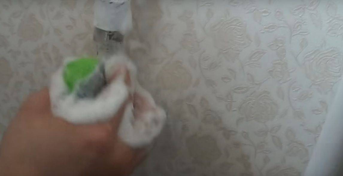 ![]() ![]() | 5. Проверяем на наличие утечек с одной и другой стороны. С помощью губки наносим обычный мыльный раствор на всю поверхность трубы. |